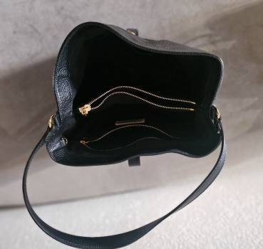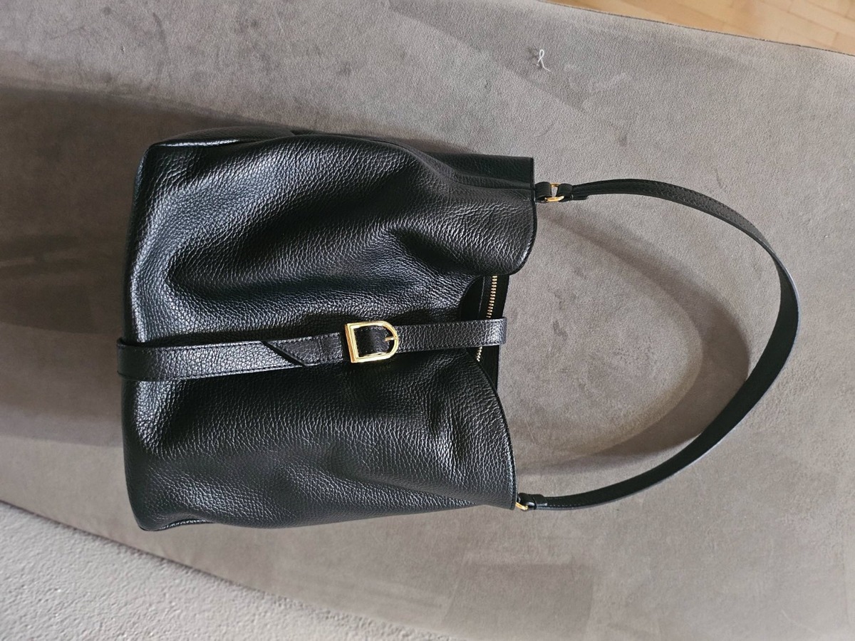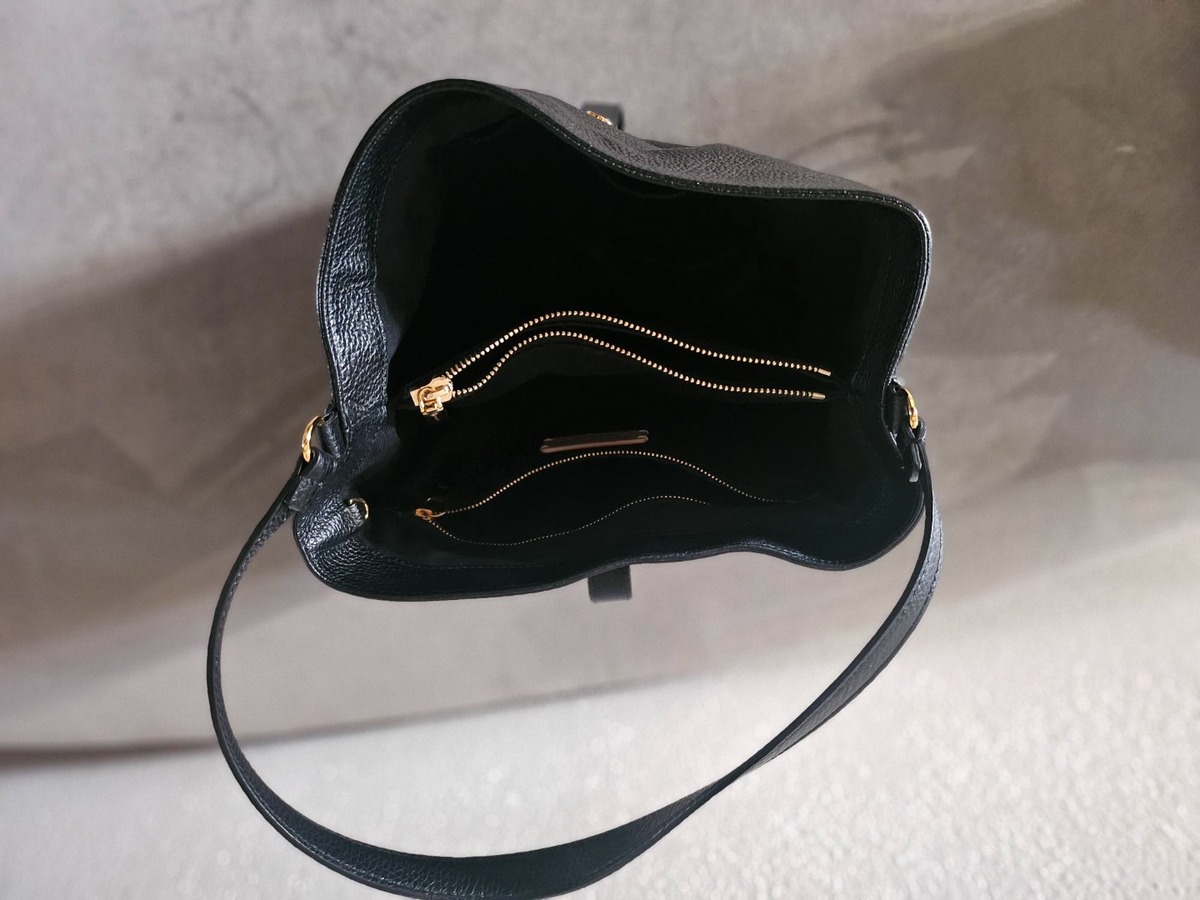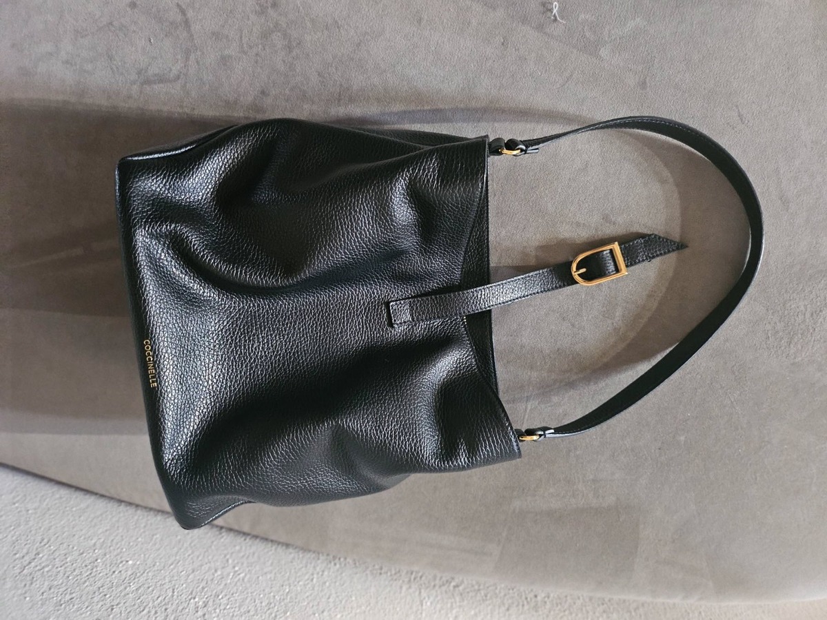 Sac Coccinelle en cuir noir porté quelques fois acheté neuf 150 CHf environ cédé pour 40 CHF. Largeur 22 cm, hauteur 21 cm et profondeur 12 cm. en parfait état.