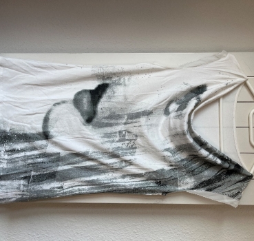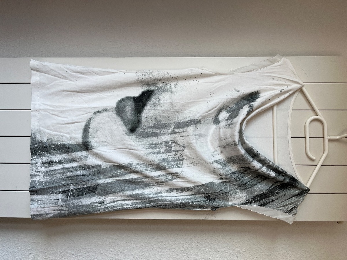T-shirt col bénitier, blanc/gris. Viscose/Élastan