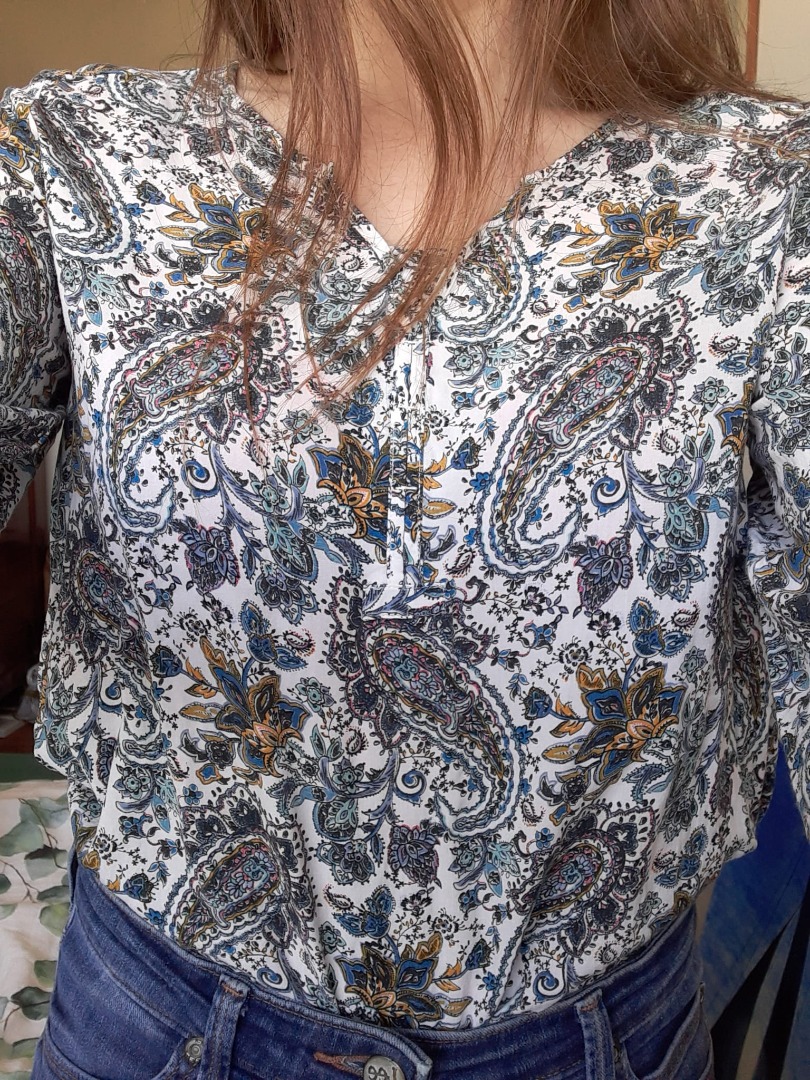 Je vous présente une blouse légère et printannière de la marque Esprit, idéale à porter lorsque les journées se réchauffent ou en soirées d'été.