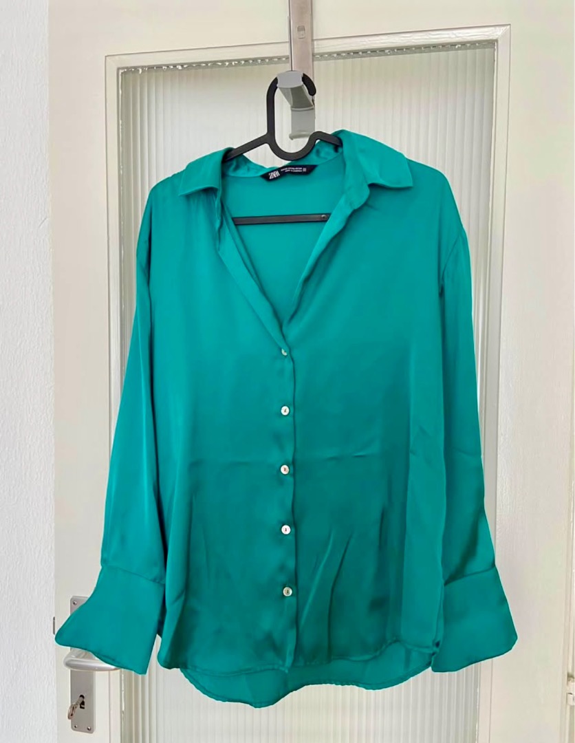 Blouse verte en satin taille XS
