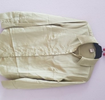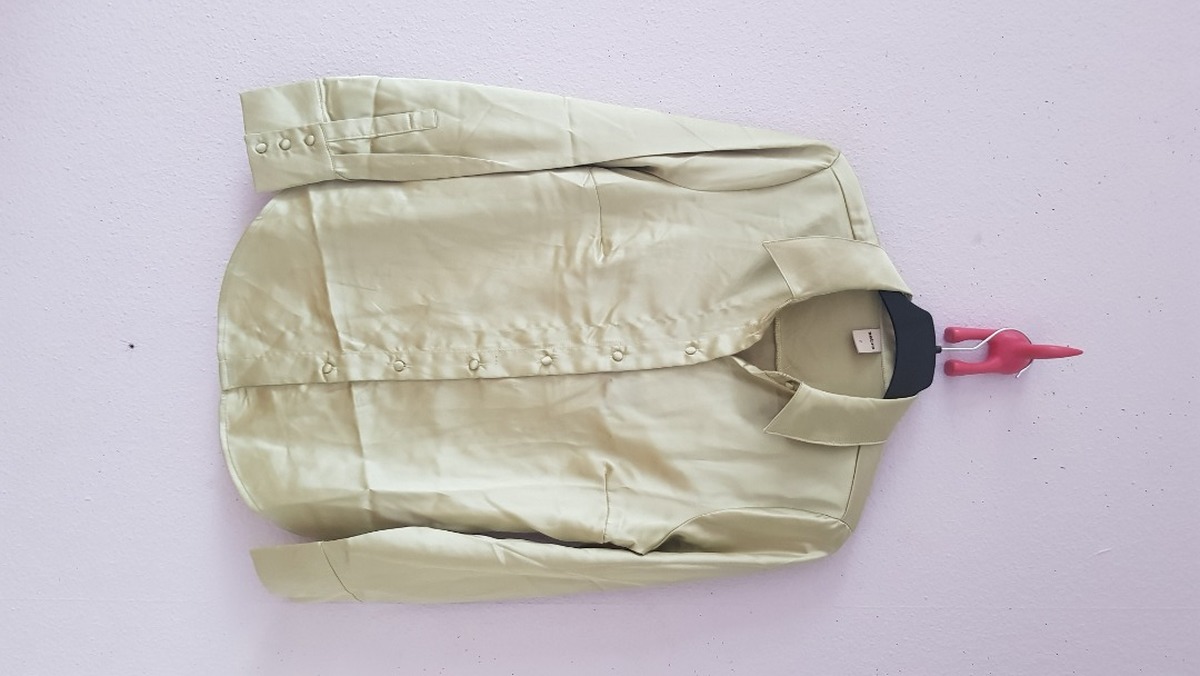 Chemise satinee vert pale, portee une fois, tout petit fil tiré