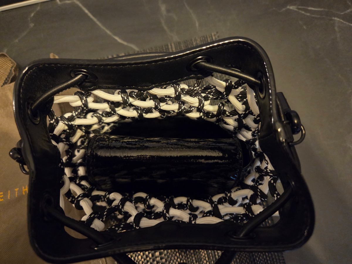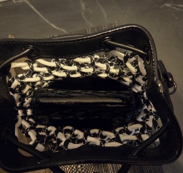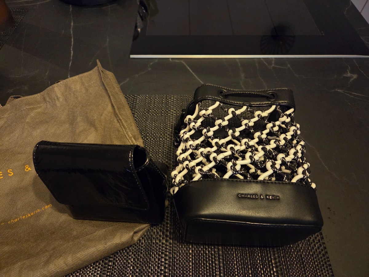 Joli sac à main noir et blanc CHARLES & KEITH avec son sac à poussière. Pochette intérieure amovible. 19cm de hauteur, 14cm de largeur et 10cm de profondeur.