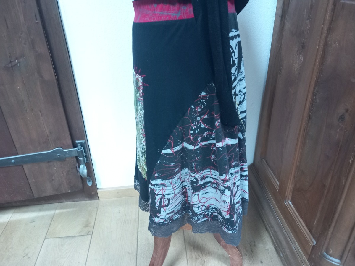 La taille est une ceinture élastique et la jupe est doublée et légèrement évasée