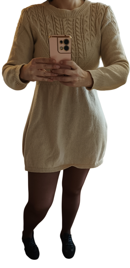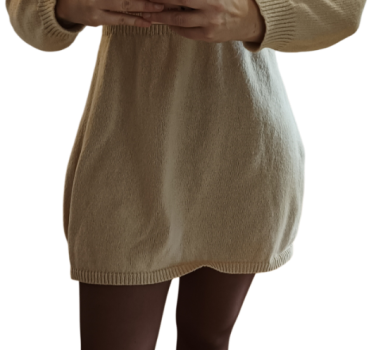 Robe pull en laine style vintage de couleur crème.