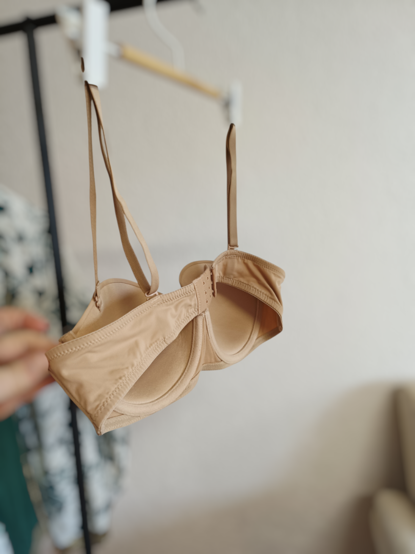 Lot de sous-vêtements gainants nudes se composant d'un soutien-gorge taille 90B d'occasion, en très bon état car porté une seule fois