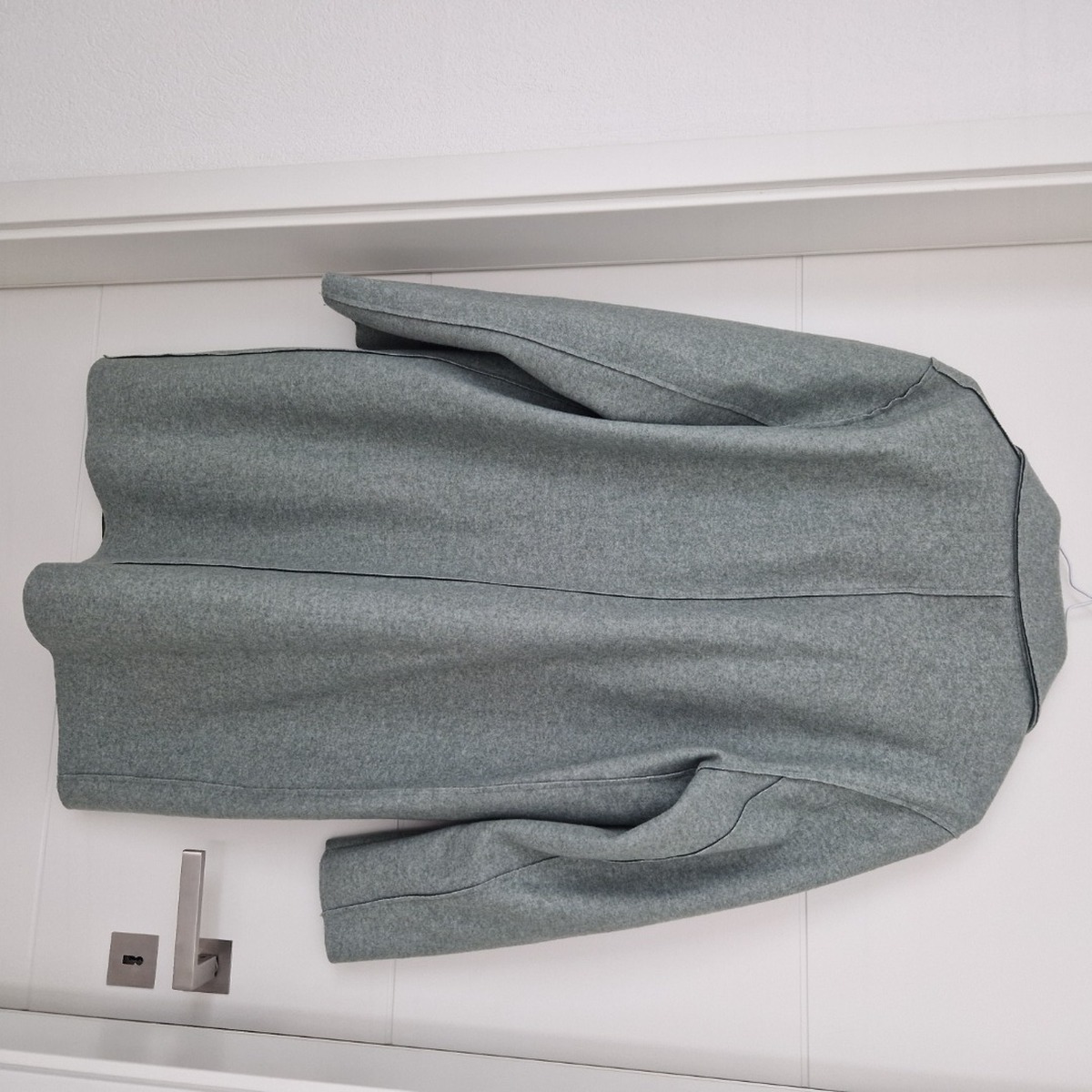 Manteau long vert gris excellent état coupe droite style minimales et effet souple confortable a porter