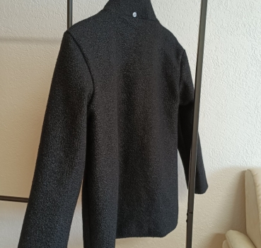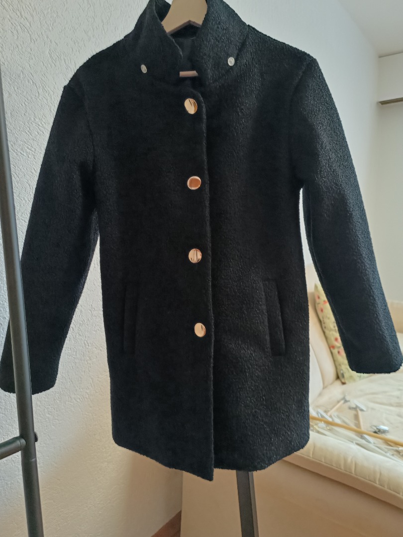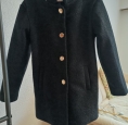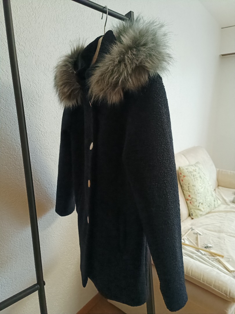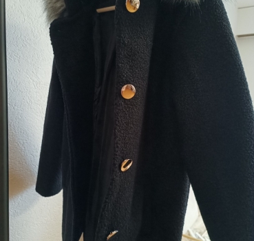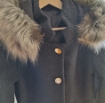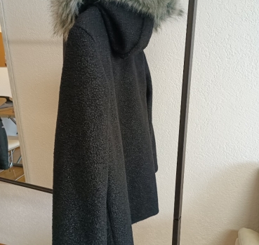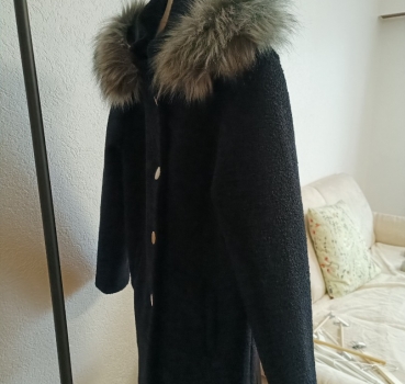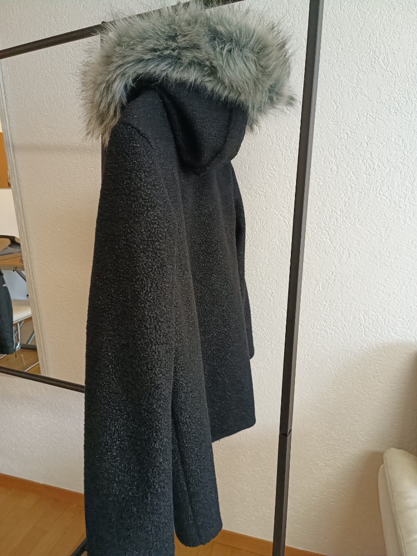 Magnifique manteau d'hiver noir, chic, avec capuche fausse fourrure amovible.