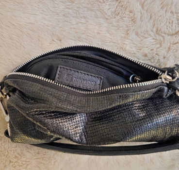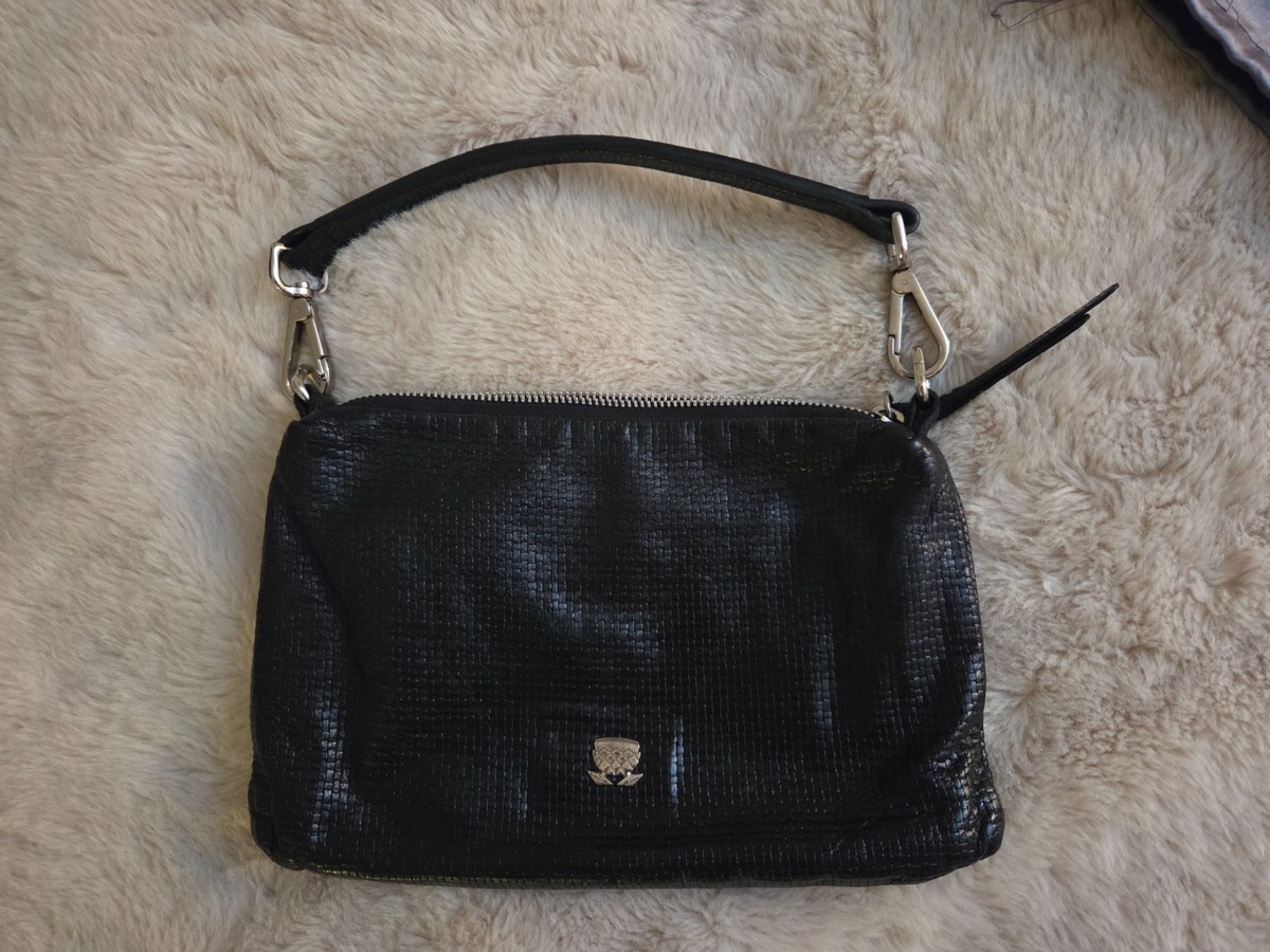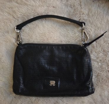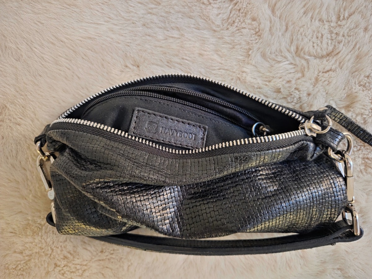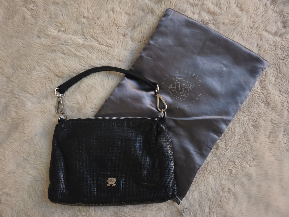 Pochette NAVYBOOT noire en très bon état, fermeture éclair, poche intérieure zippée et son sac à poussière. 25.5 cm de largeur et 17.5cm de hauteur.