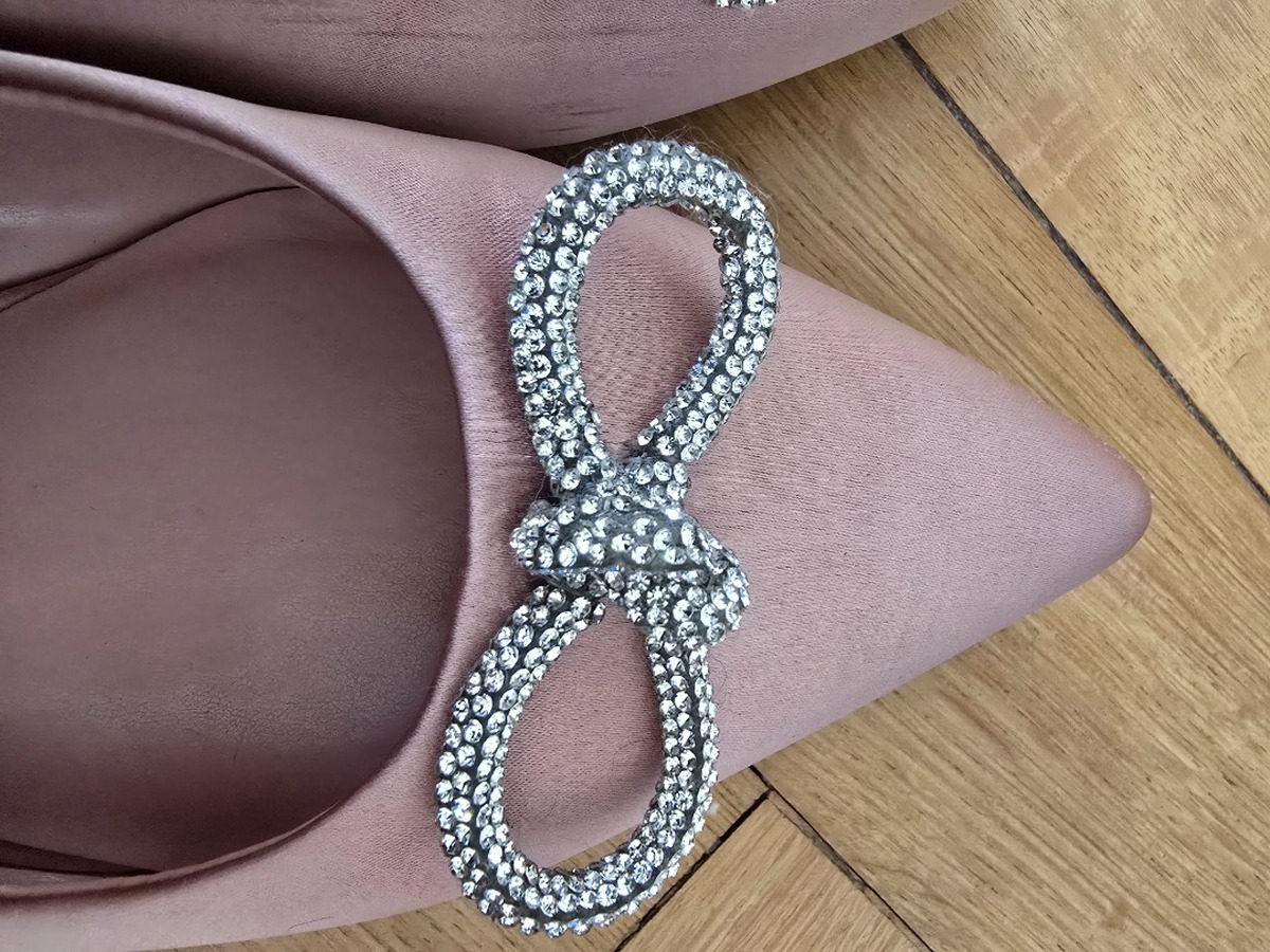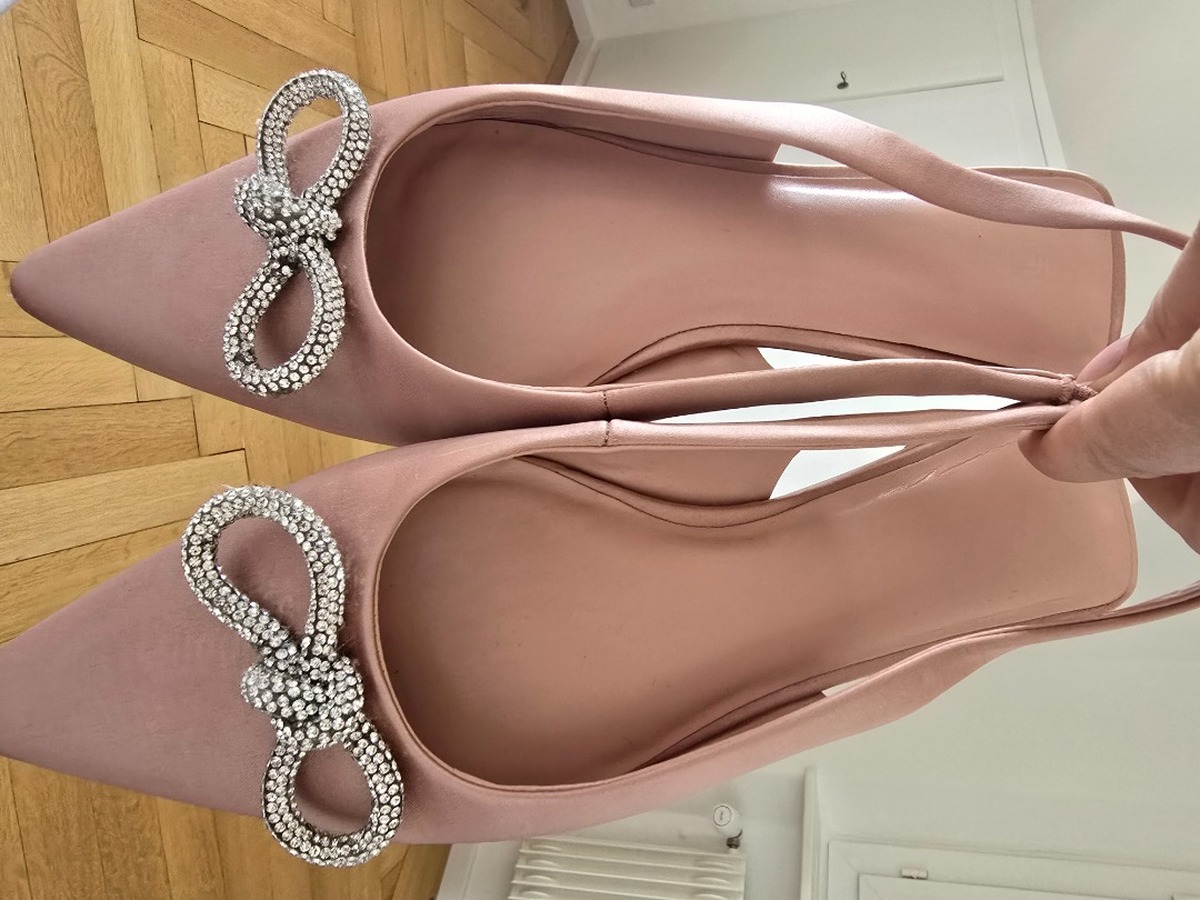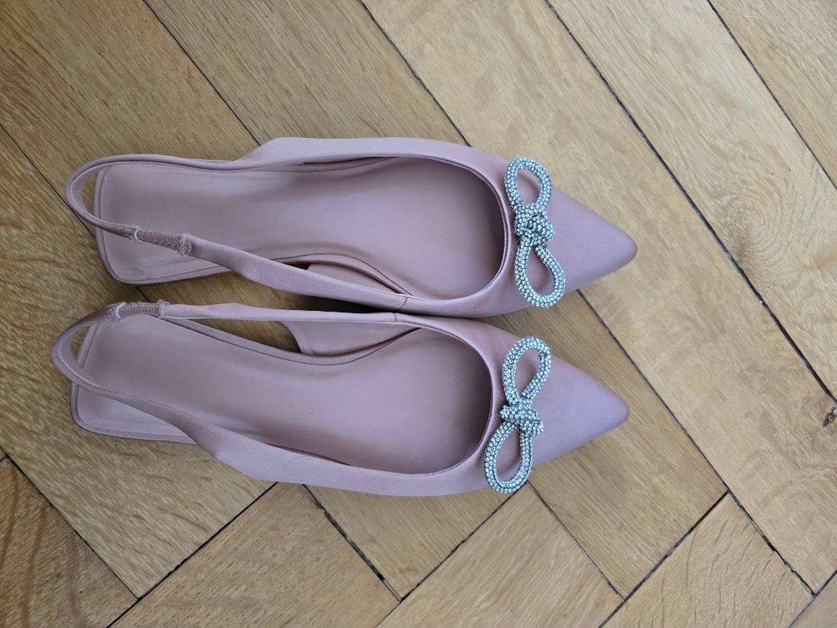 Ballerines sling back rose pâle en satin avec nœud strassé, très bon état, portée deux fois. Marque Next / prix initial 45 CHF