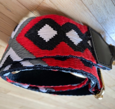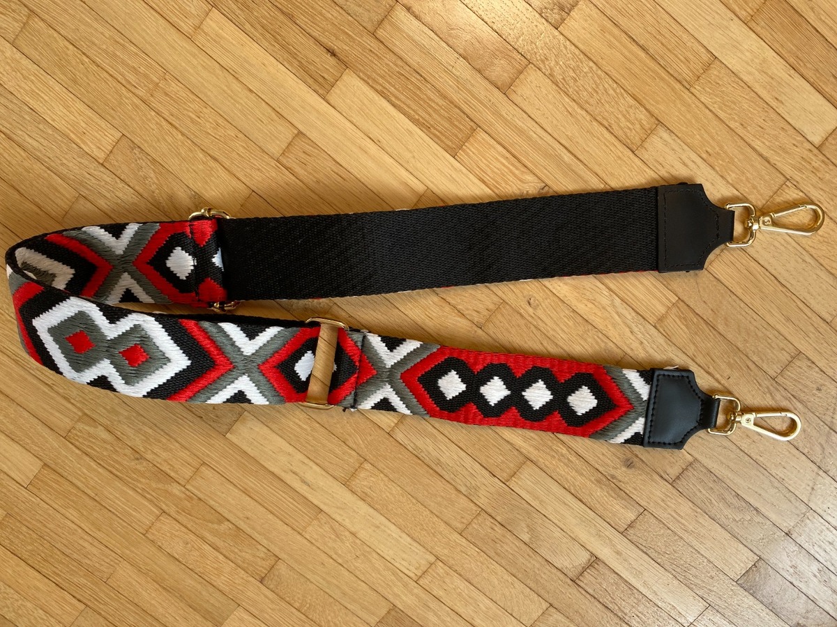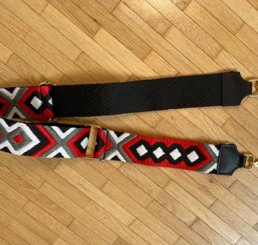 Bandoulière en cuir et tissu multicolore 90 cm extensible pour sac à main femme.
