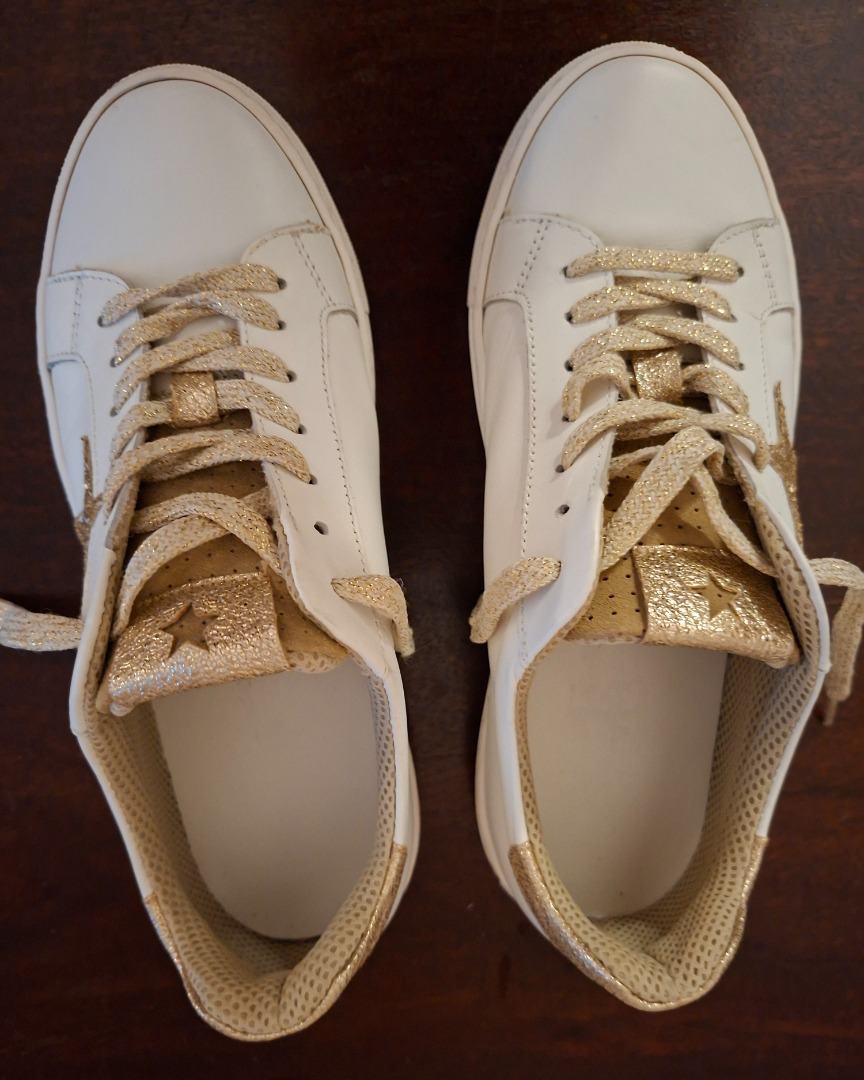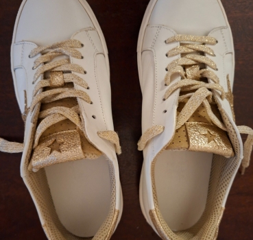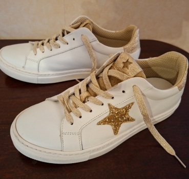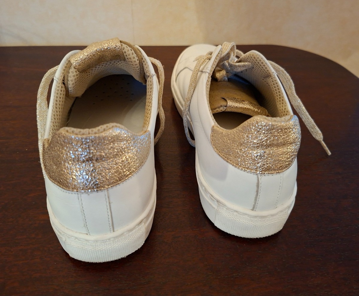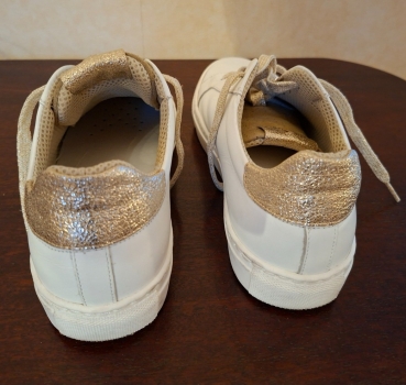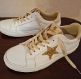 Baskets en cuir blanc et doré.
