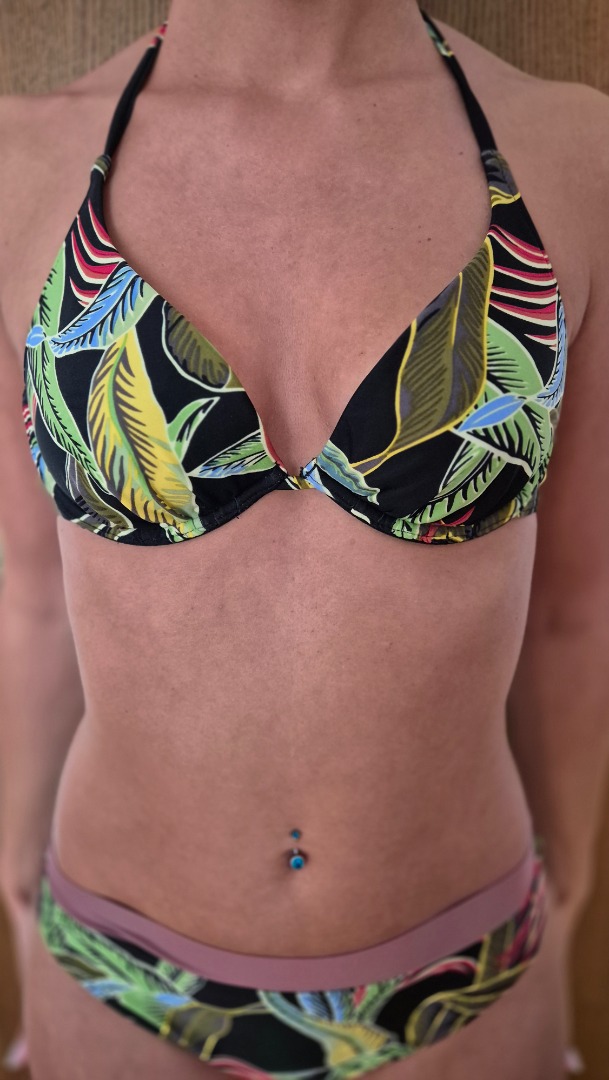 Joli bikini neuf de la marque Kays en taille EUR 38. Jamais porté avec son étiquette d'origine. Motifs tropicaux tendance, idéal pour la plage ou la piscine.