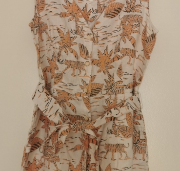 Combinaison sans manches en lin avec deux poches latérales et une ceinture.