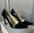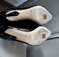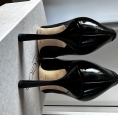 Escarpins Brittany noirs, neufs - jamais portés, en cuir de veau verni, talons inclinés de 100 mm. Boite et pochon.