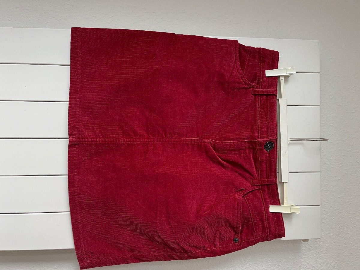 Jupe velours côtelé, bordeaux, longueur 42 cm
