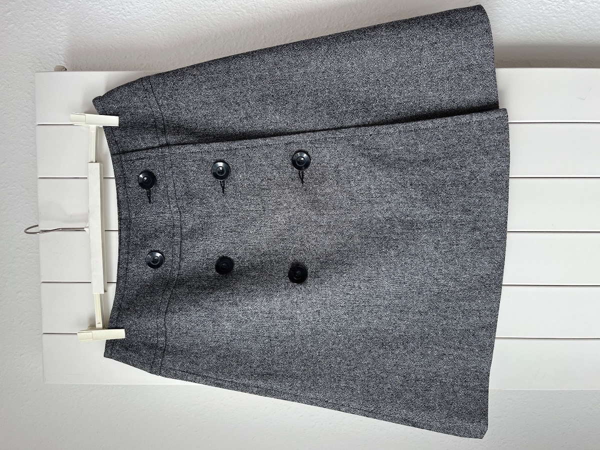 Jupe trapèze grise,boutons décoratifs, longueur 51 cm