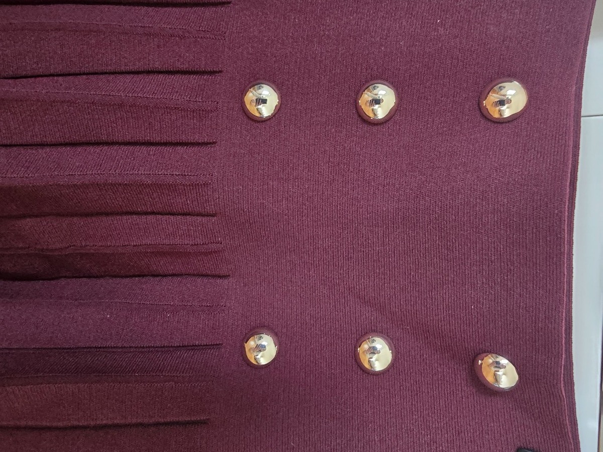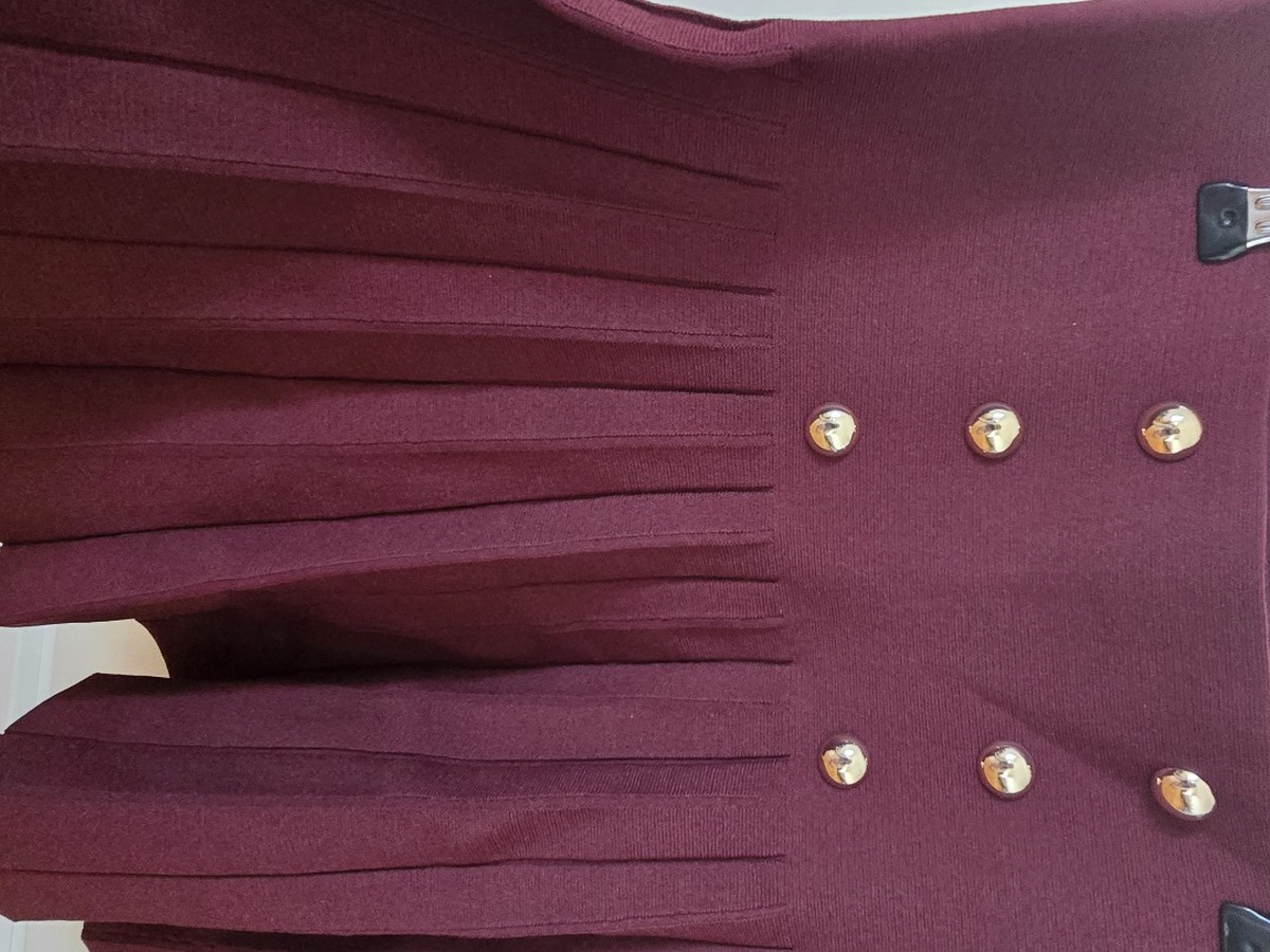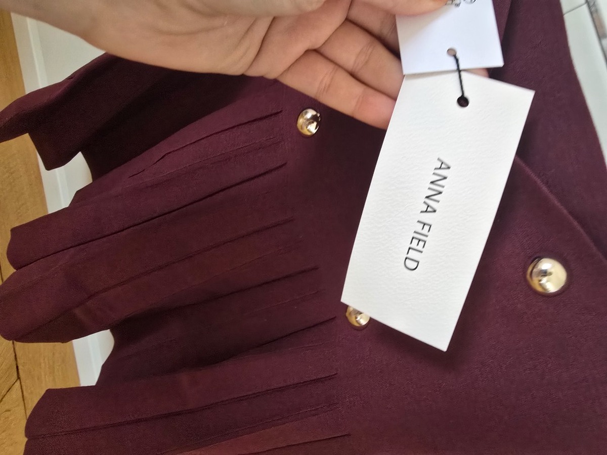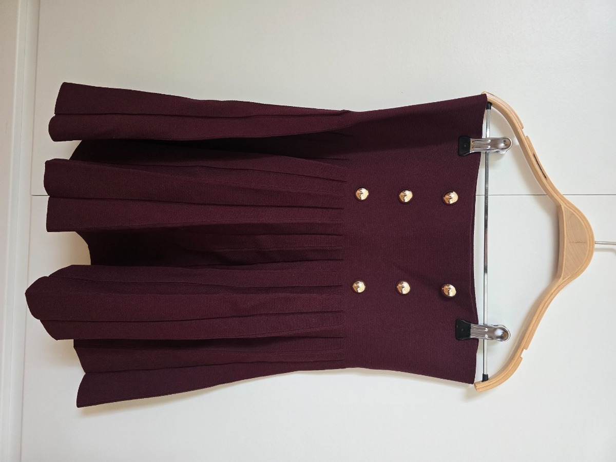 Jupe plissée stretch, moulante taille haute bouton dorée neuve jamais portée étiquette encore dessus. Marque Anna Field taille M couleur bordeaux longueur mi cuisse prix initial 50