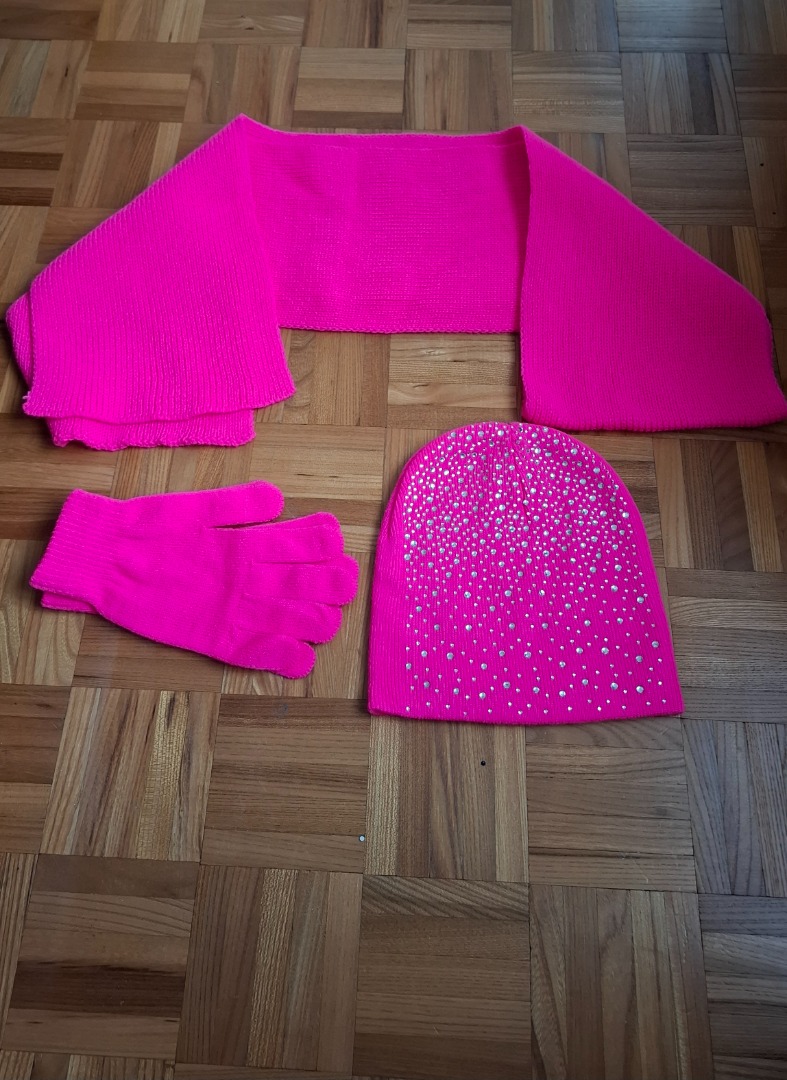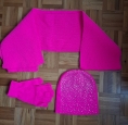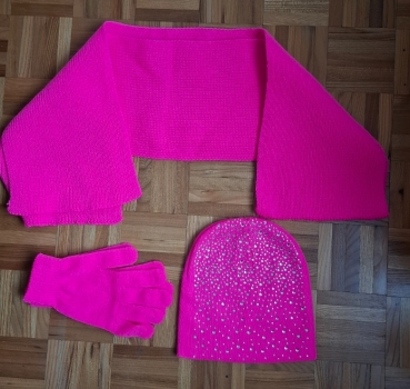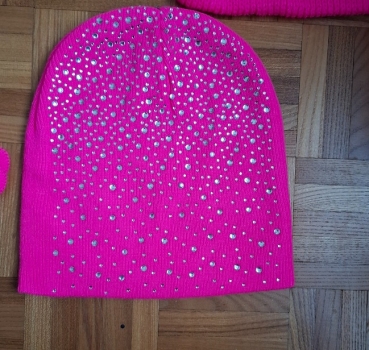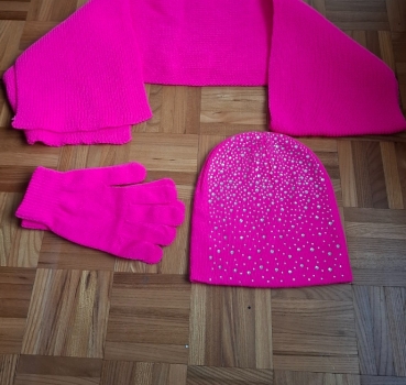 1 bonnet avec brillants, 1 écharpe, 1 paire de gants