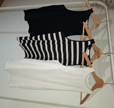 Débardeurs femme H&M lot de 3 : blanc, noir, rayer noir/blanc