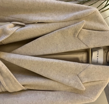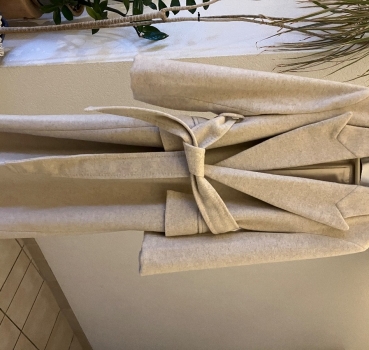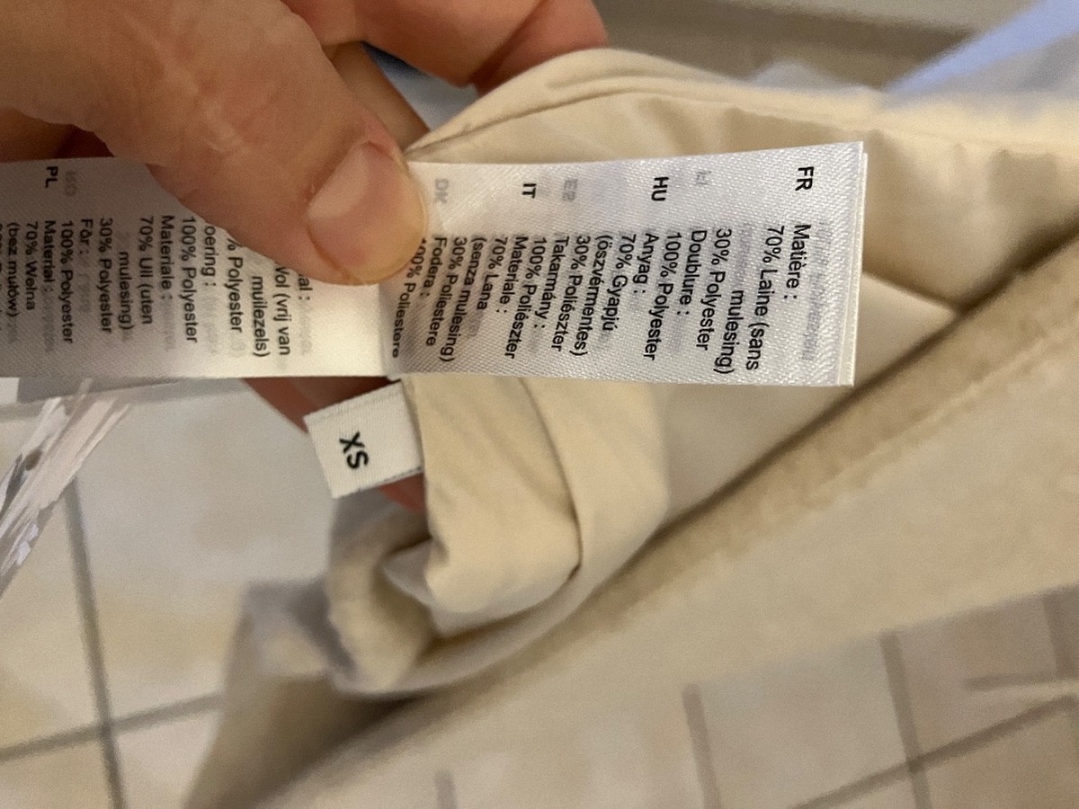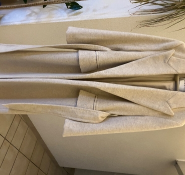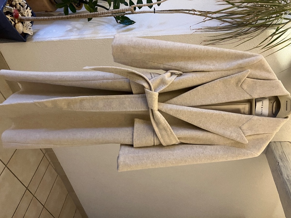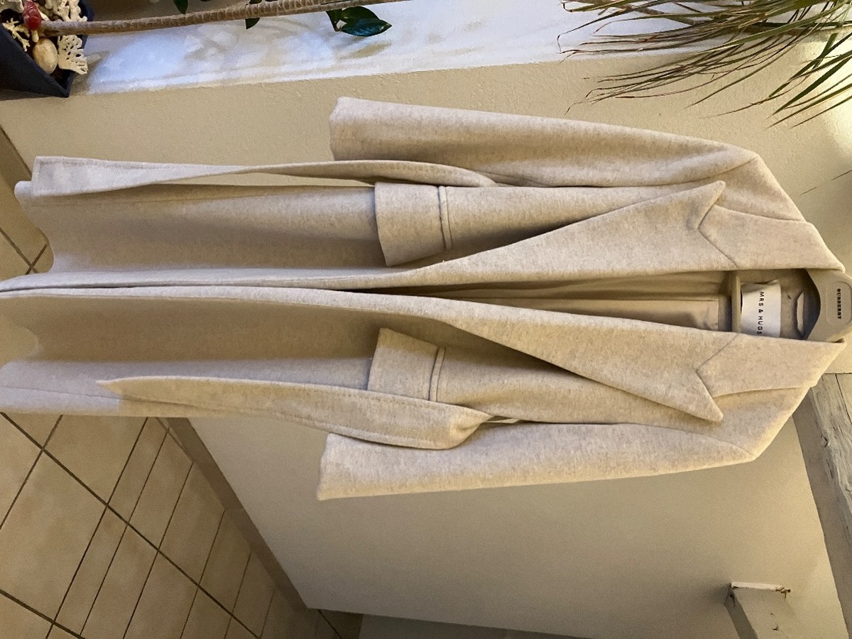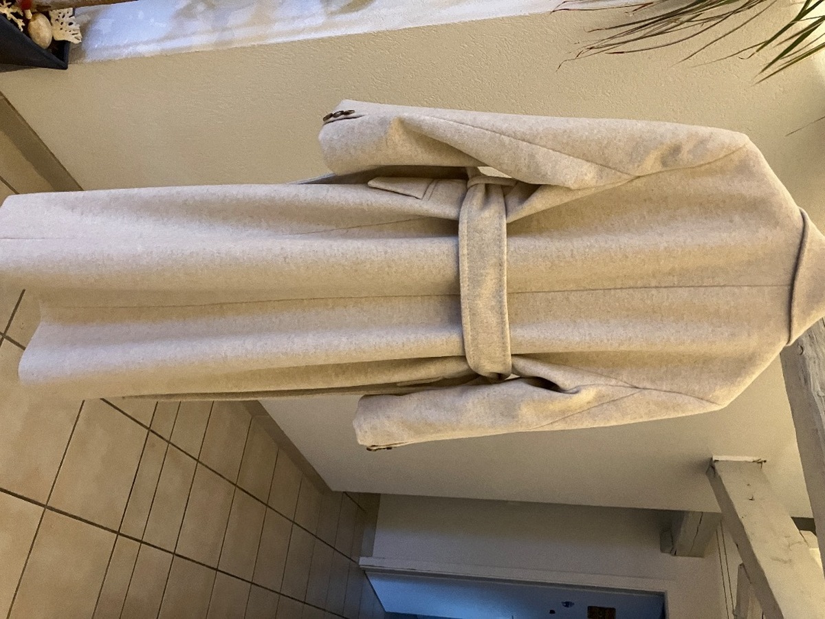 Manteau long écru en laine 70% (garantie sans mulesing). Neuf jamais porté car un peu trop grand pour moi.