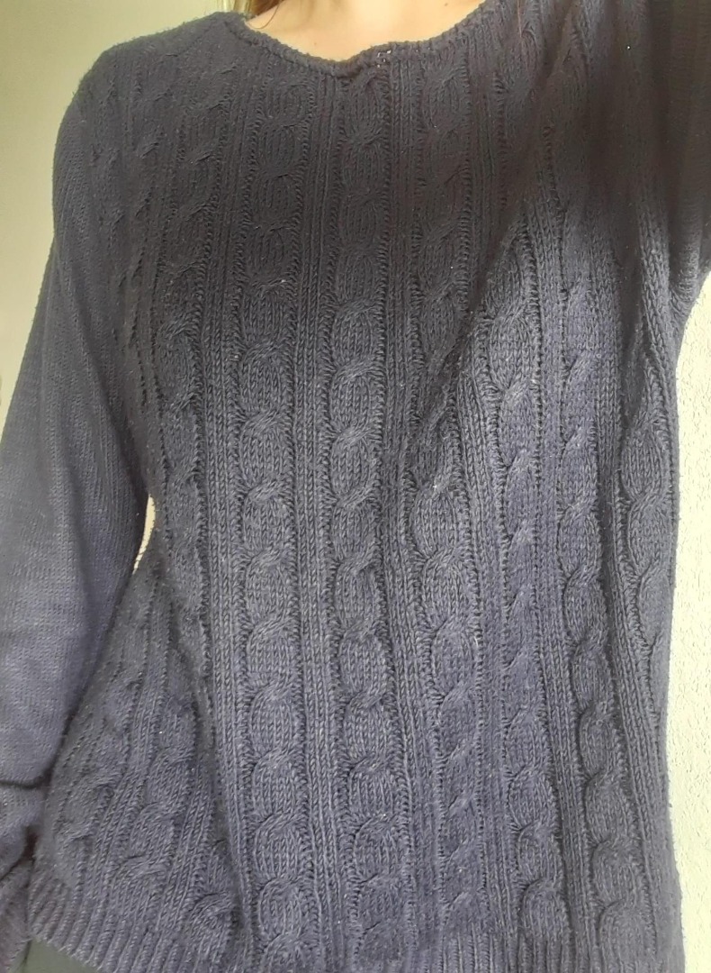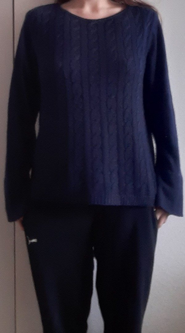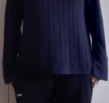 Je vous présente ce pull manches longues bleu marine avec de jolies torsades Made in Italy. Il tient bon chaud, idéal pour les journées hivernales.