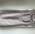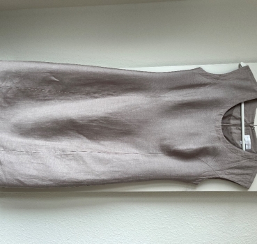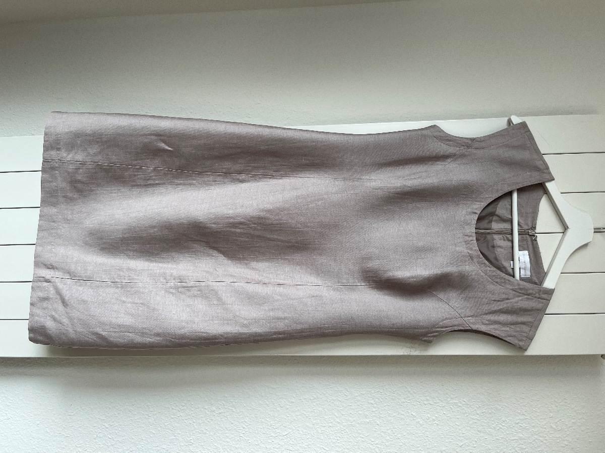 Robe fourreau taupe, doublée, longueur 93 cm. Lin/Viscose légèrement satinée