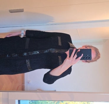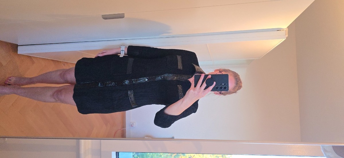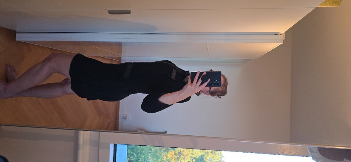 Robe bi-matière taille 38 français, donc plutôt un 36.