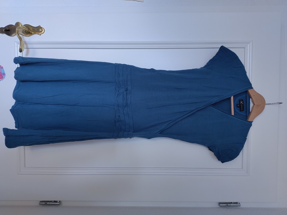 Jolie robe bleu pétrole, fluide et féminine.