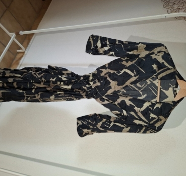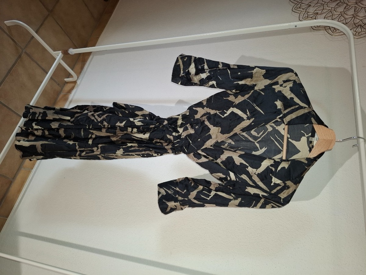 Robe de soirée coupe portefeuille ZARA noir avec imprimé doré légèrement satiné