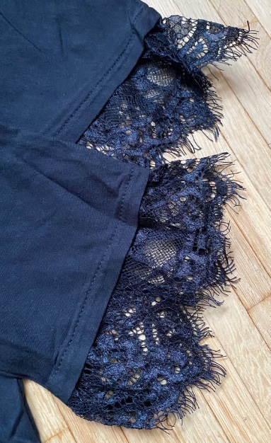 Coupe ample, avec détail en dentelle sur les manches.