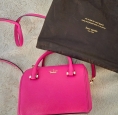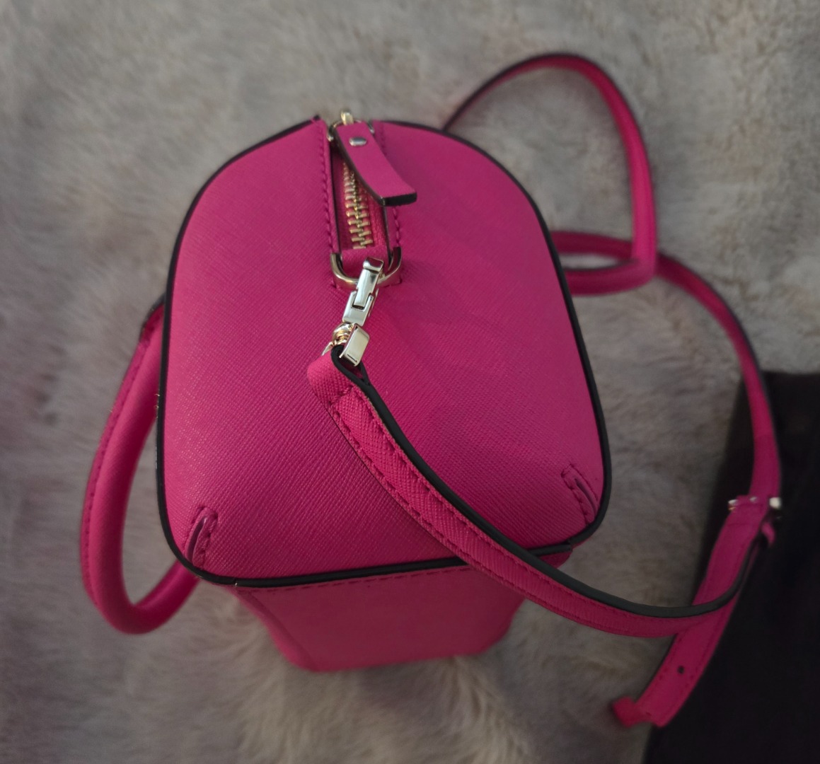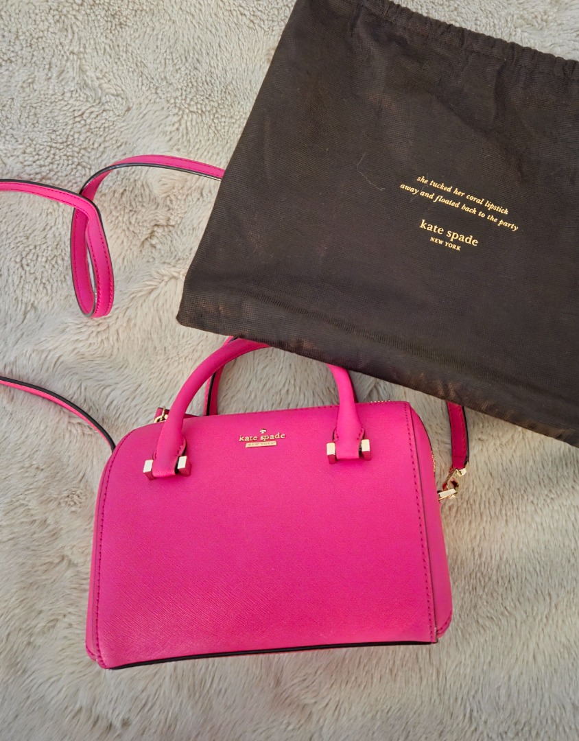 Très joli mini sac élégant Kate Spade New York, rose, jamais porté. Vendu avec son sac à poussière. Bandoulière amovible. Poche intérieure. 20 cm de largeur, 15 cm de hauteur et 10 cm de profondeur.