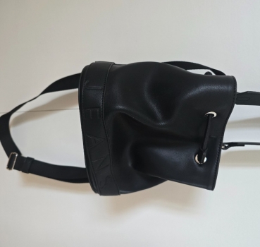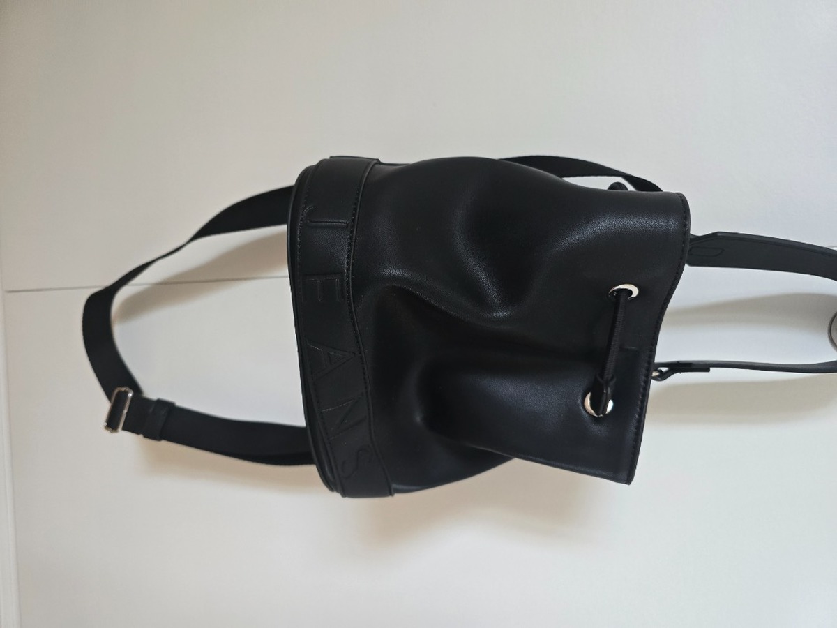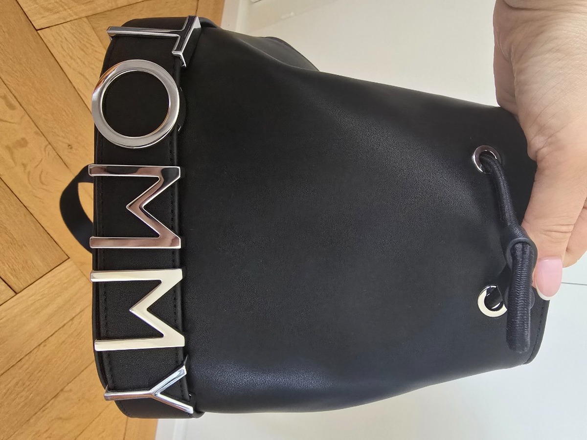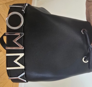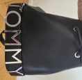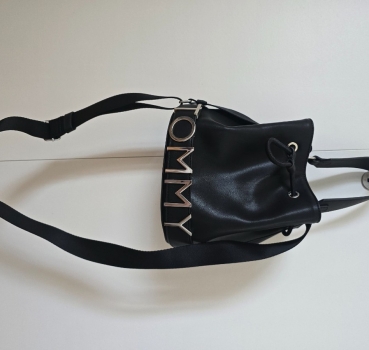Sac sceau Tommy Jeans noir en similicuir, etat neuf, porté Hanse main ou épaule avec bandoulière réglable. Très léger.