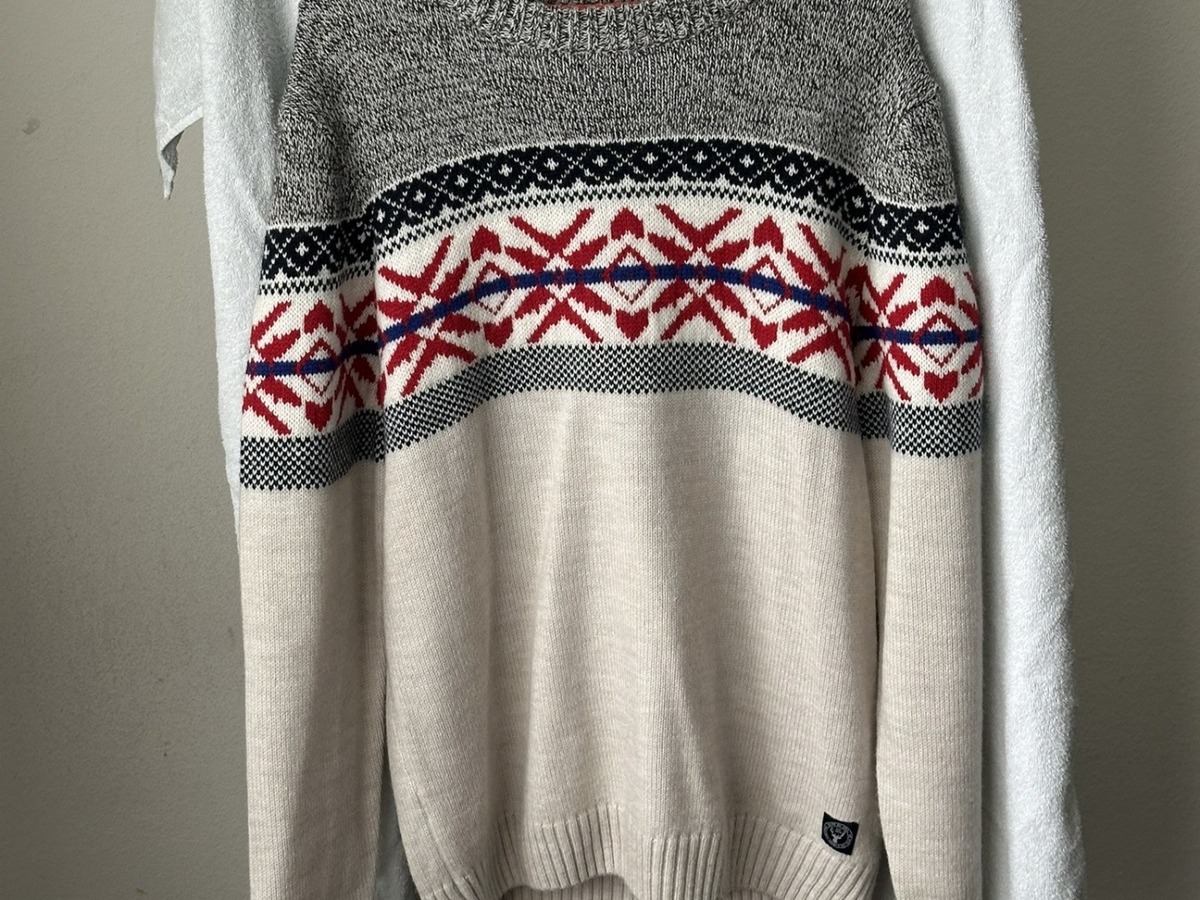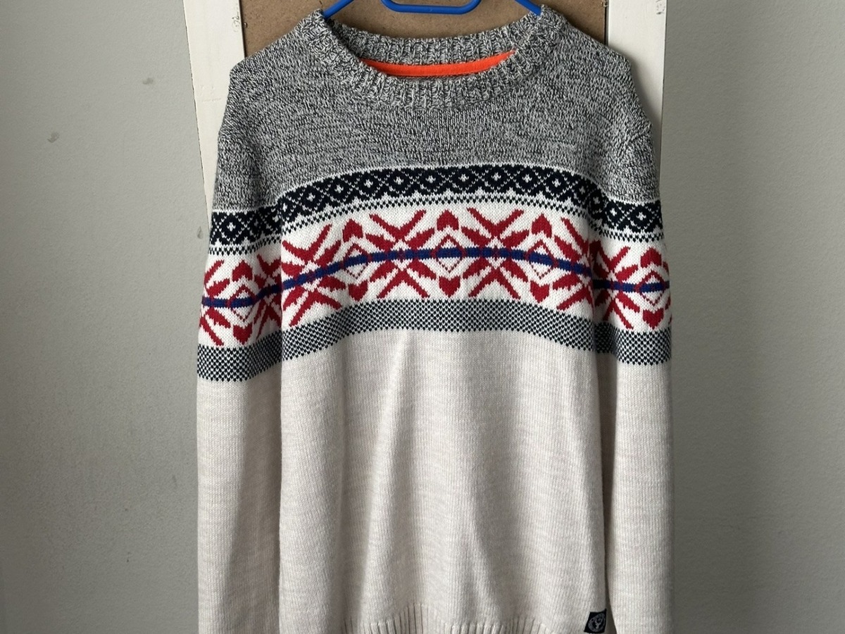 Couleur : Écru/Gris, jacquard rouge/bleu