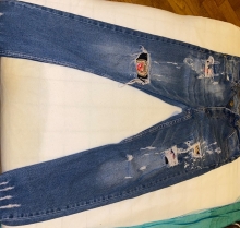 Jeans bleu clairTaille: m Prix: CHF 15.-