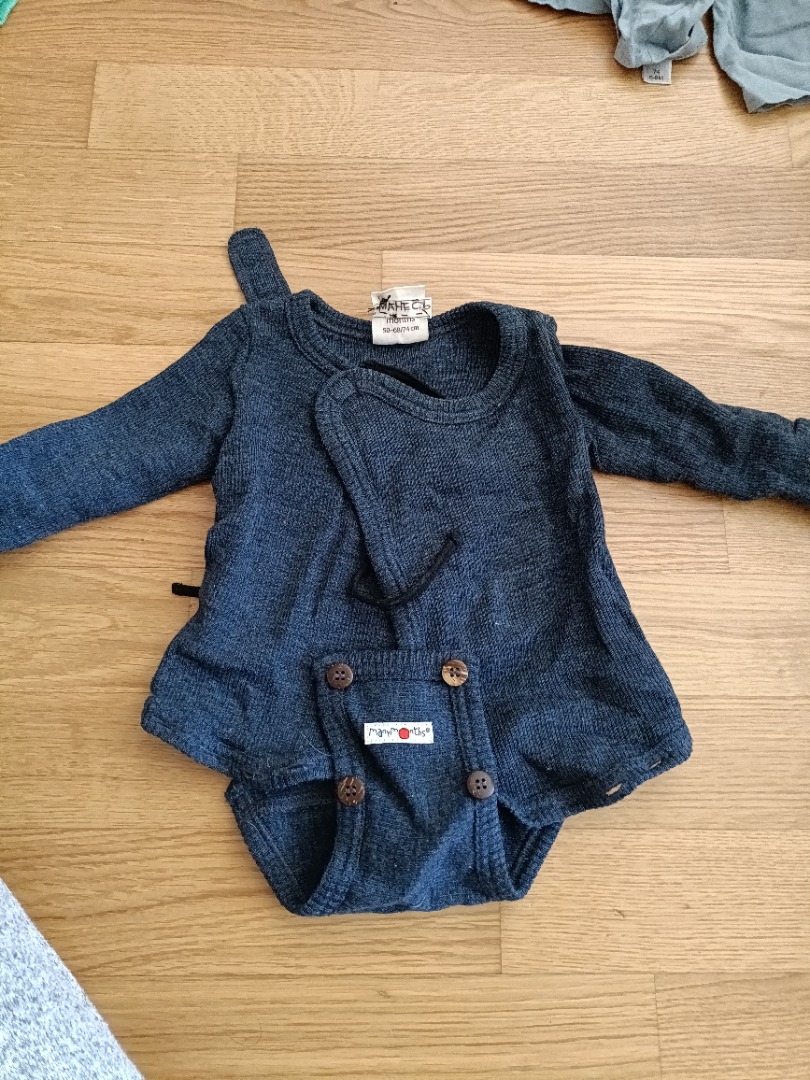 Body de la marque Manymonths, évolutif, va pour un enfant de 50 cm jusqu'à 74 cm, et peut-être converti en pull en enlevant la partie entre les jambes. 100% laine mérinos.