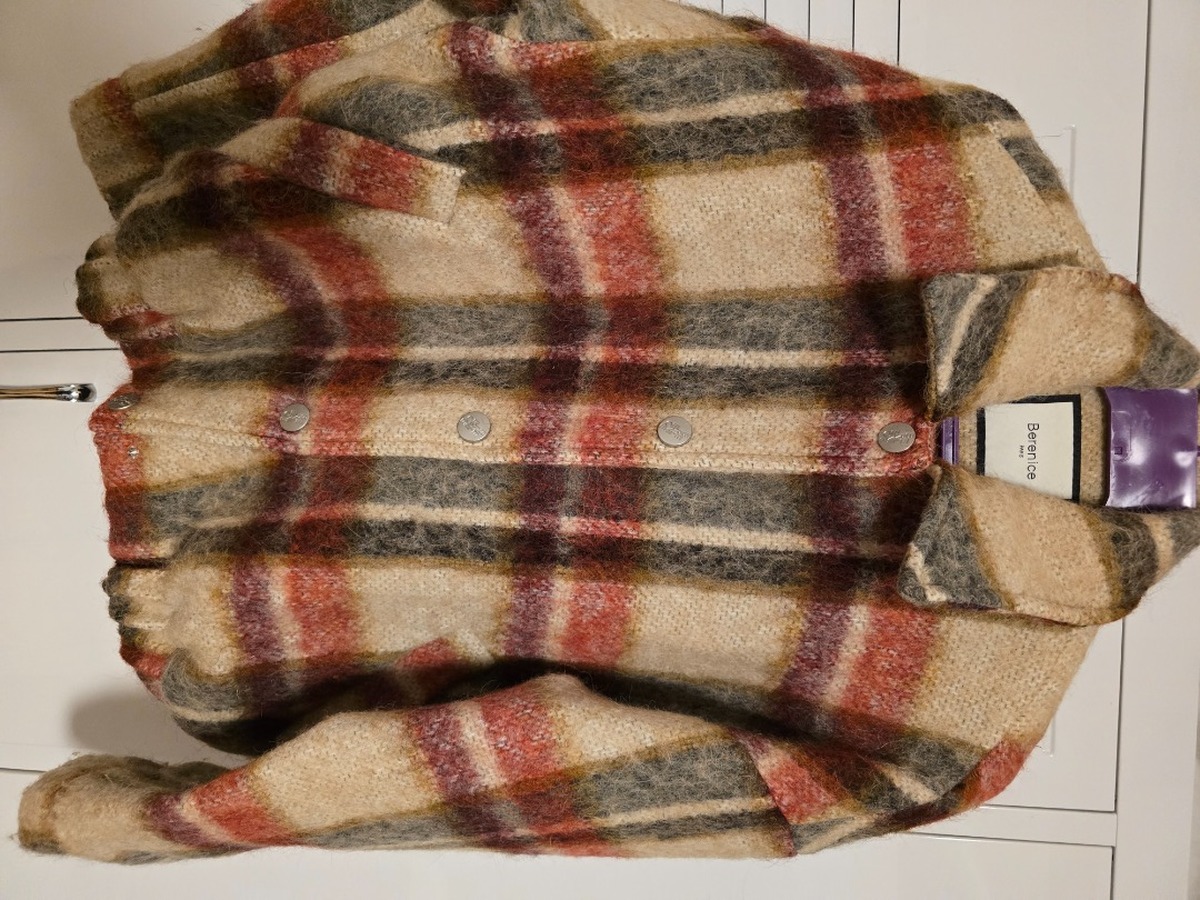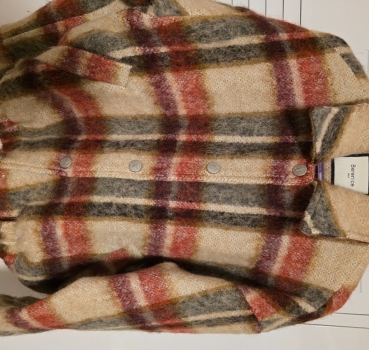 Blouson automne hiver en laine à carreaux oversize et cintré à la taille dans le bas bouton pression style casual chic. Composition voir photos étiquettes. Ce blouson tient chaud. Marque Berenice Paris