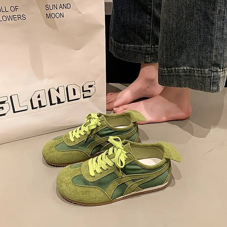 Chaussures sportives décontractées vertes pour femmes.