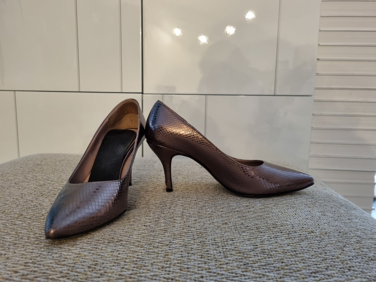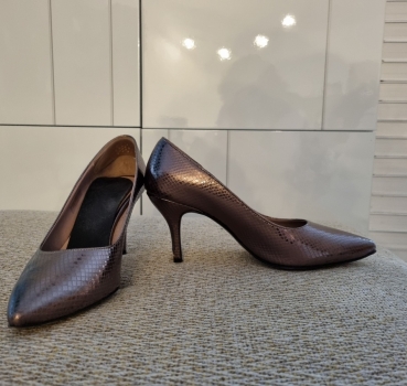 Elégants escarpins à talon haut (9cm) - couleur rosé métalisé. Semelles anti dérapantes. Marque Sienna. Fabriquéen Italie. Etat neuf. Très peu portés.