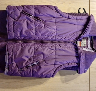 Gilet marque switcher, matelassé, col montant et des bordures côtelées au niveau des emmanchures et de la taille.