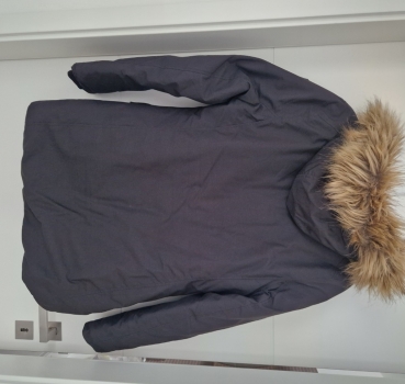 Manteau chaud mi long près du corp avec capuchon intégré. La fourrure du capuchon peut s enlever.