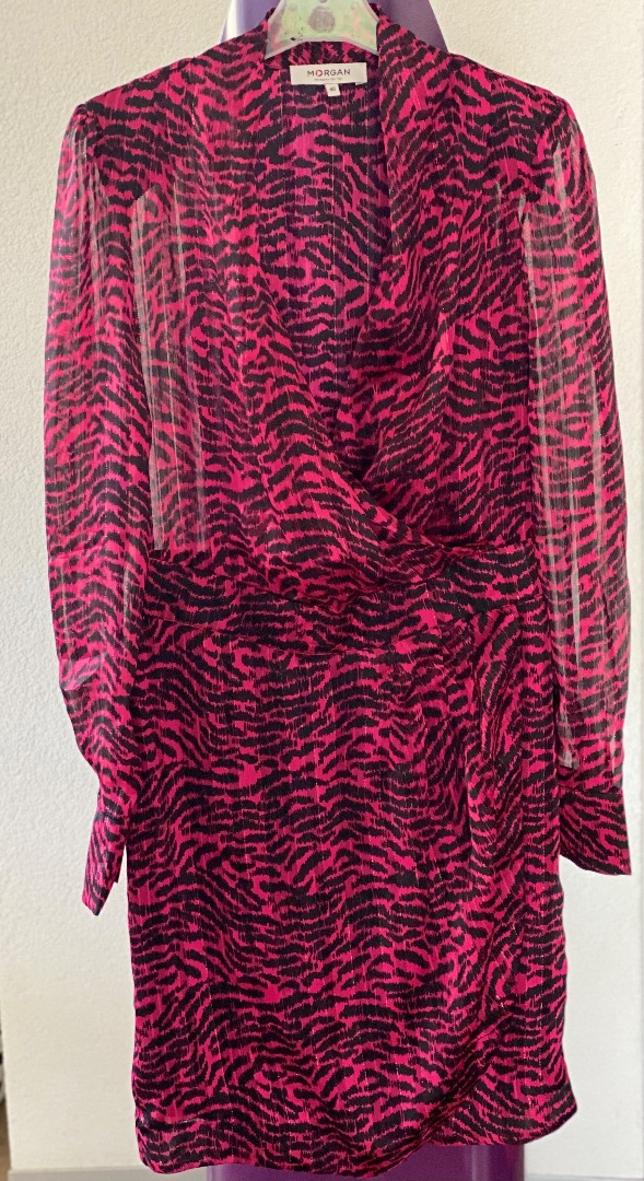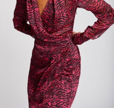 Robe portefeuille rose et noire Morgan