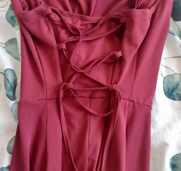 Je vous présente cette robe rouge foncé, idéale pour une soirée. Jamais portée car elle m'est trop petite.
