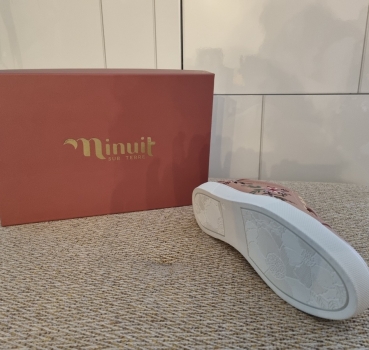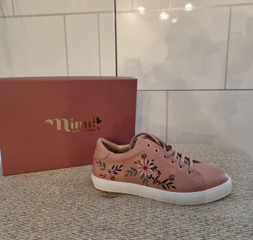 Magnifiques baskets couleur vieux rose brodées. En cuir végan à base de produits de la vigne de la marque Minuit sur Terre (marque francaise, 100% vegan et upcycling, produit fabriqué en Europe).