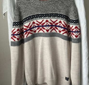 Couleur : Écru/Gris, jacquard rouge/bleu
